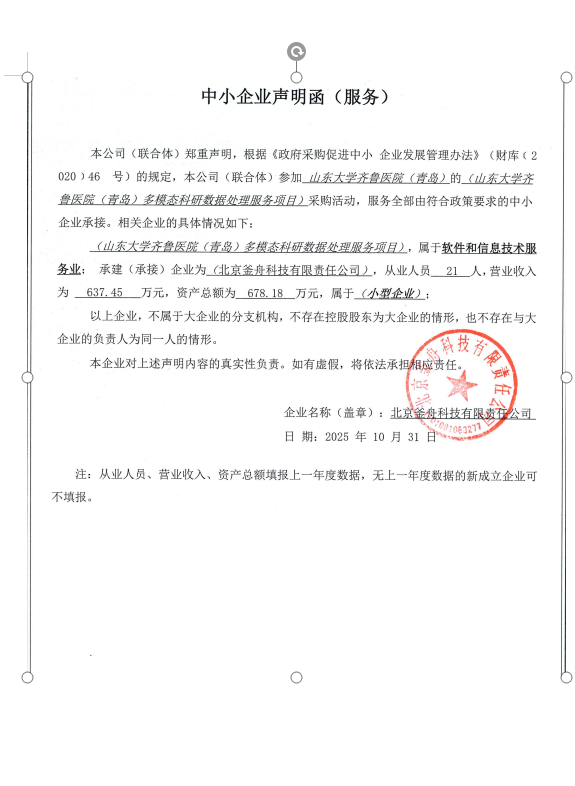 - 项目名称:山东大学齐鲁医院(青岛)多模态科研数据处理服务项目