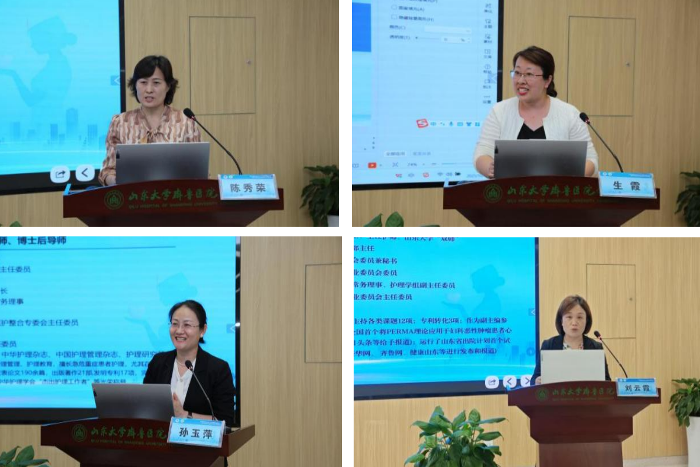 陈秀荣、生霞、孙玉萍、刘云霞四位护理部主任担任会议主持。
