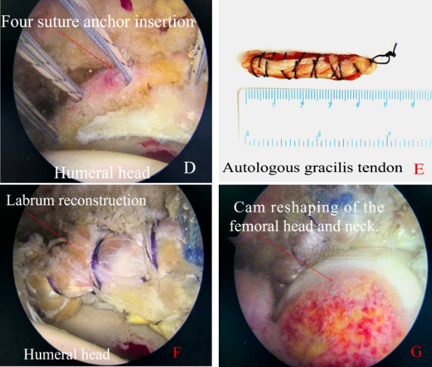 手术团队果断执行备用方案。他们先从患者自身大腿处取了一段名为“股薄肌”的肌腱,将其精心编织成强韧的移植物。随后,像在墙壁上打入膨胀螺丝一样,在髋臼骨缘上精准置入4枚可吸收的“锚钉”,并用高强度缝线将编织好的肌腱牢固地固定上去,成功重建了一个全新的“盂唇密封圈”。同时,团队还对导致撞击的股骨头异常凸起进行了精确打磨,从根源上消除了撞击。整个手术仅在几个“钥匙孔”大小的切口下完成,创伤极小。